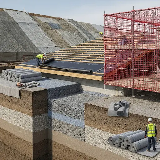 Reciclamos los plásticos y los convertimos en pellets, los cuales fundimos y añadimos colorantes para dar el tono exigido por el cliente. Y por medio de extrusión, dejamos caer filamentos muy finos sobre una banda, donde se entretejen, formando así la banda o la tela no tejida. esta tela se enfría rápidamente y enrollamos formando una bobina a medida.